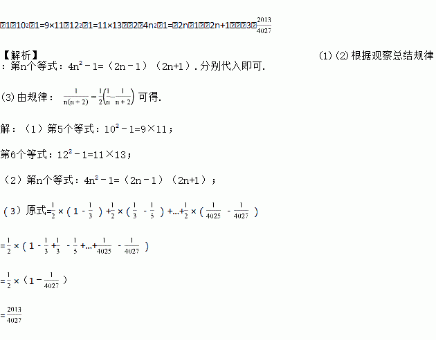 (2)写出第n个等式(用字母n表示): ;