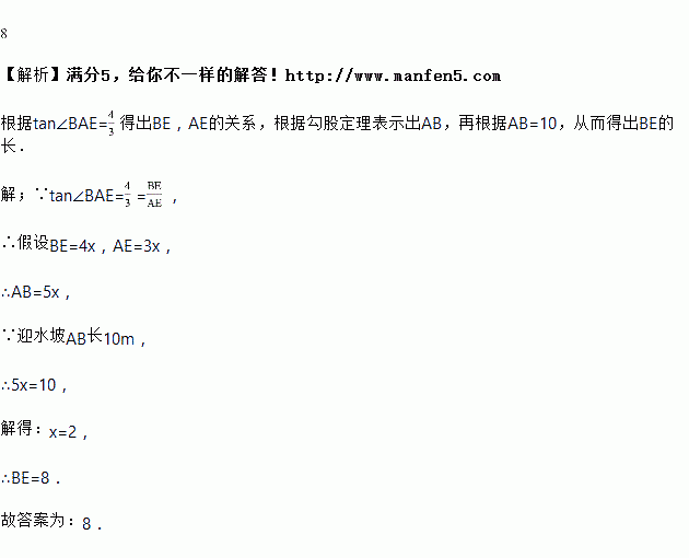 如图所示,某河堤的横断面是梯形,,迎水坡长,且,则河堤的高为________.