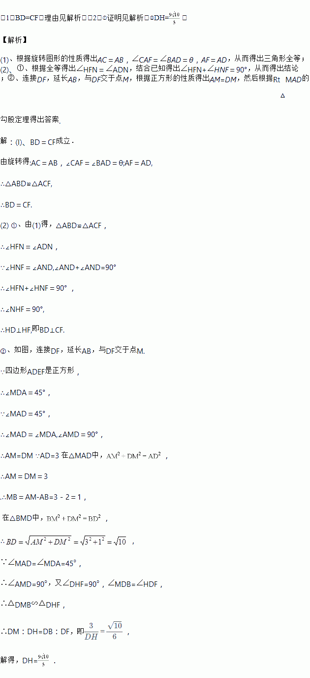 (2)当△ABC绕点A逆时针旋转45°时,如图3,延长BD交CF于点H.