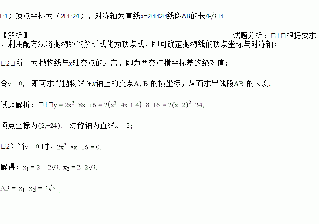(1)用配方法求出抛物线y=2x2﹣8x﹣16图象的顶点坐标及对称轴.