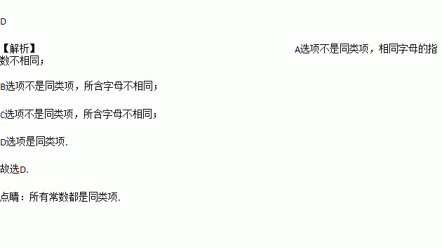 A. 与 B. 12ax与8bx C. 与 D. π与-3