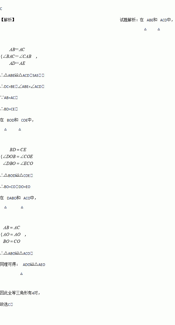 如图,已知AB=AC,AD=AE,则图中全等的三角形有 ( )