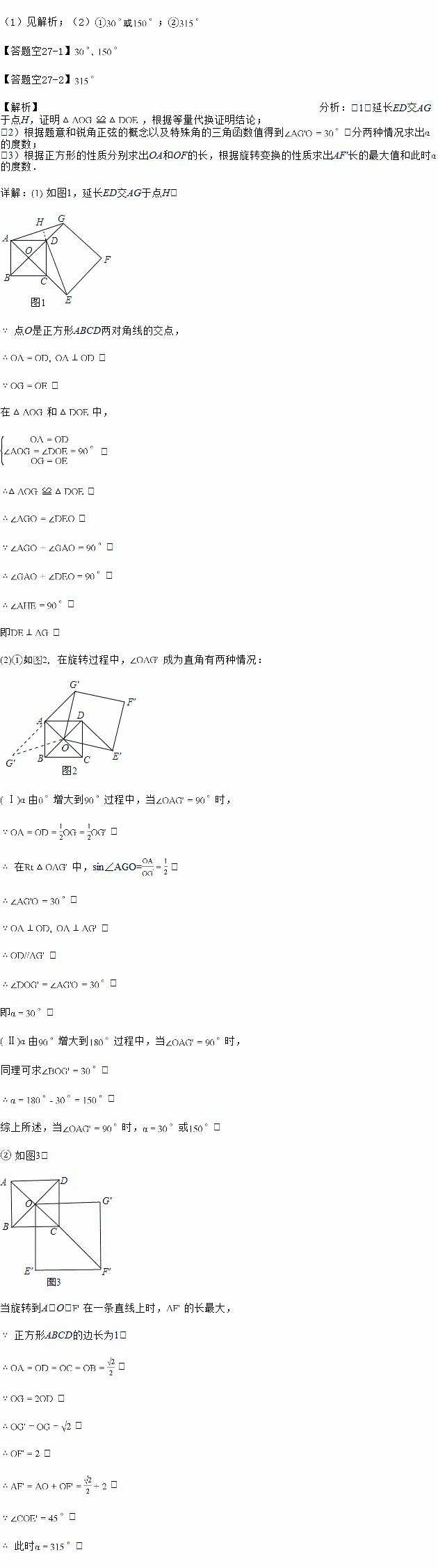 正方形ABCD固定,将正方形OEFG绕点O逆时针旋转![]()
