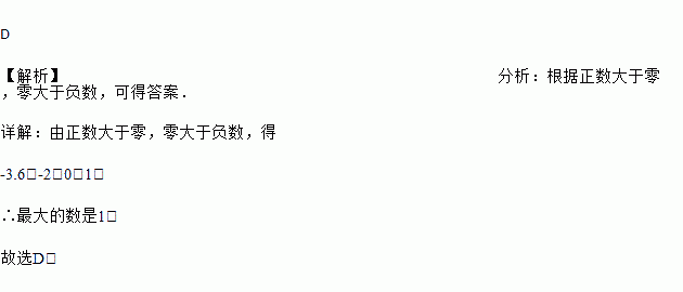 在1,-2,0,-3.6这四个数中,最大的数是( )