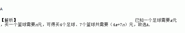 A 【解析】已知一个足球需要m元,买一个篮球需要n元,可得买4个足球、7个篮球共需要(4m+7n)元,故选A.