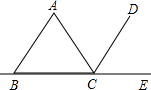 解:如图:DC平分∠ACE,且AB∥CD,