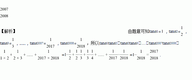 如图,在矩形PA0AnQ中,A0An=n,PA0=1,A1,A2,…,An-1是线段A0An的n-1个等分点,即Ak-1Ak=1,记∠PAkA0=αk(其中k=1,2,3,…,n),则tanα1tanα2+tanα2tanα3+…+tanα2007tanα2008=________.