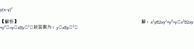 y(x-y)2 【解析】【解析】 x2y﹣2xy2+y3=y(x2﹣2xy+y2)=y(x﹣y)2.故答案为:y(x﹣y)2.
