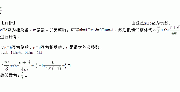 若,互为倒数,、互为相反数,为最大的负整数,则___________.