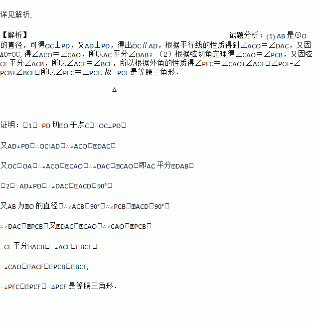 如图,AB 是⊙O 的直径,点C 是⊙O 上一点,AD 与过点C的切线垂直,垂足为 D,直线 DC 与AB 的延长线相交于点P,弦CE平分∠ACB,交AB 于点F,连接BE.