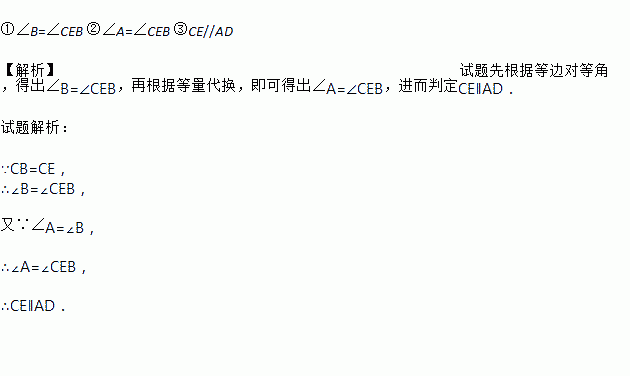 如图,在四边形ABCD中,∠A=∠B,CB=CE.求证:CE//AD.
