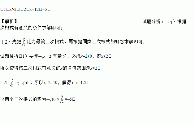(2)已知–为最简二次根式,且与为同类二次根式,求x的值,并求出这两个二次根式的积.