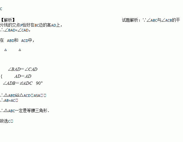 已知中, 与的平分线的交点恰好在边的高上,那么一定是( ).