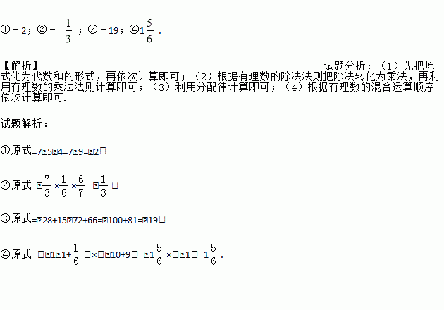①7﹣(+5)+(﹣4). ② .