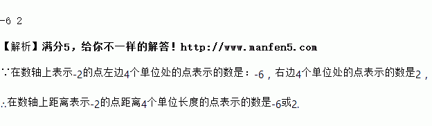 在数轴上与﹣2 的距离等于 4 的点表示的数是___________.