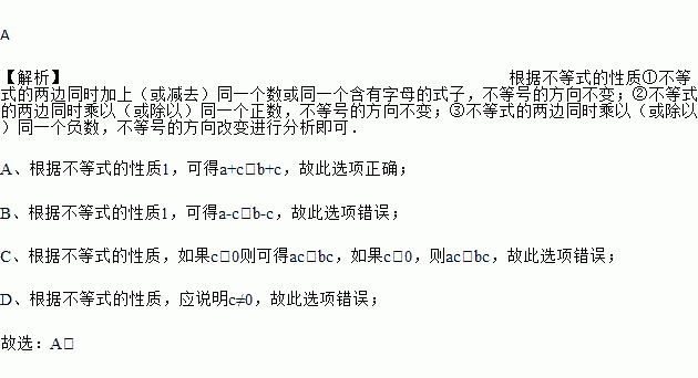 已知 a<b,若 c 是任意实数,则下列不等式中总是成立的是( )