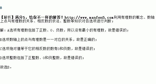 A. 最小的有理数是 B. 任何有理数都可以用数轴上的点表示