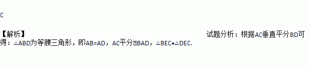 如图,四边形ABCD中,AC垂直平分BD,垂足为E,下列结论不一定成立的是( )