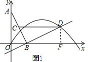 ½â´ð ½â£º£¨1£©¢Ù¹ýµãD×÷DF¡ÍxÖáÓÚµãF£¬Èçͼ1£¬![]()