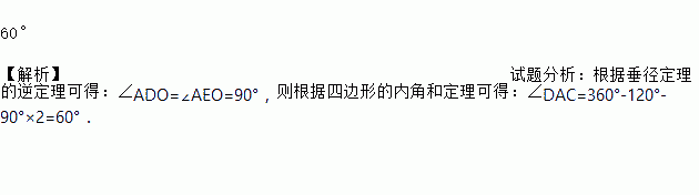 如图,AB,AC分别是⊙O的弦,D,E分别是AB,AC的中点,∠DOE=120°,则∠DAC的度数为_______.