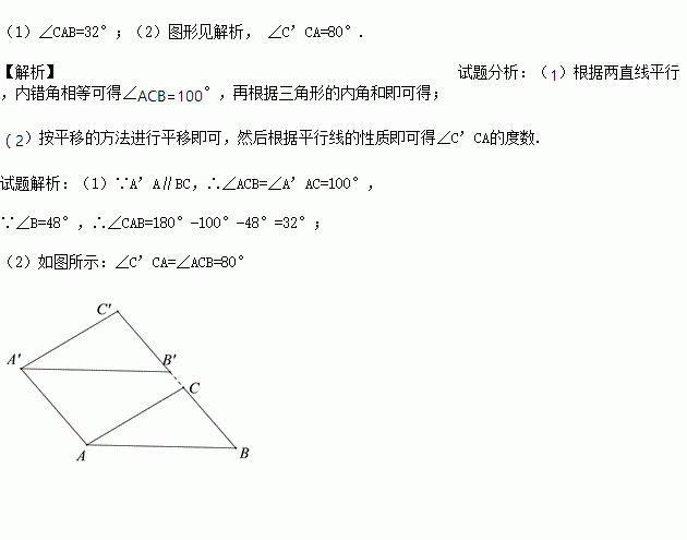 如图,∠B=48°,∠A’AC=100°,A’A∥BC.