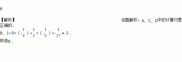 A. 0.14=0.0001 B. 3÷9×(-)=-3
