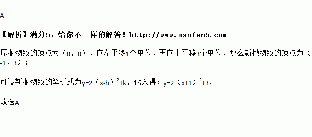 将抛物线y=2x2向左平移1个单位,再向上平移3个单位得到的抛物线,其解析式是( )