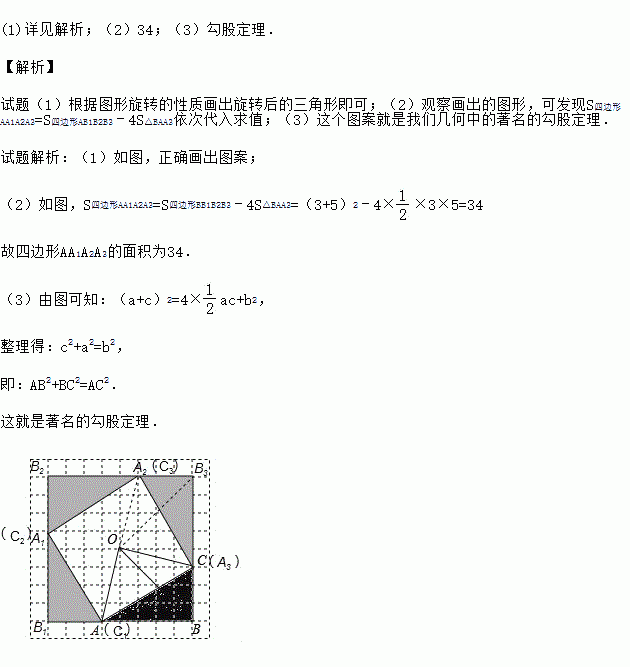(2)若网格中每个小正方形的边长为1,旋转后点A的对应点依次为A1,A2,A3,求四边形AA1A2A3的面积;