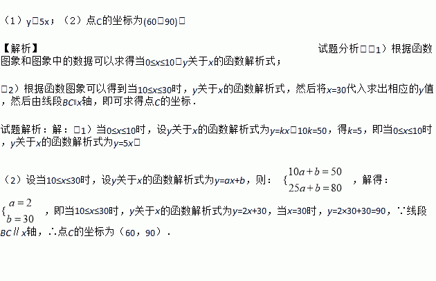 (1)当0≤x≤10,求y关于x的函数解析式;