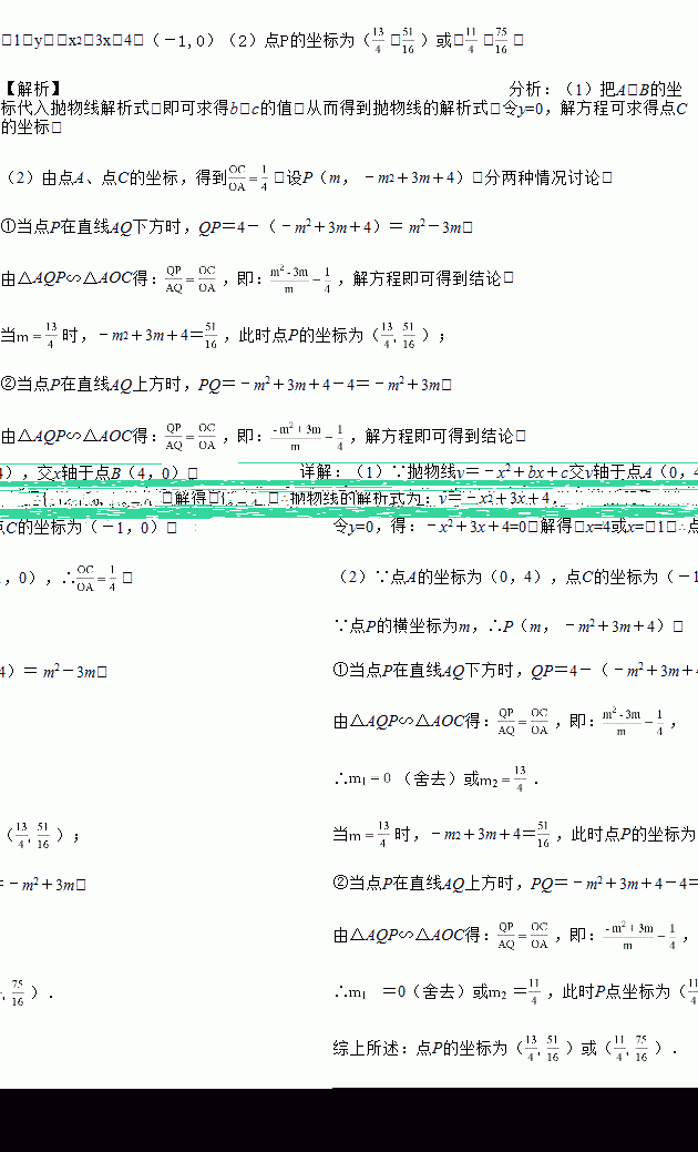 (2)点P在抛物线上运动,若△AQP∽△AOC,求点P的坐标.