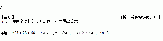已知28的立方根在n与n+1之间(n为整数),则n的值为_____.