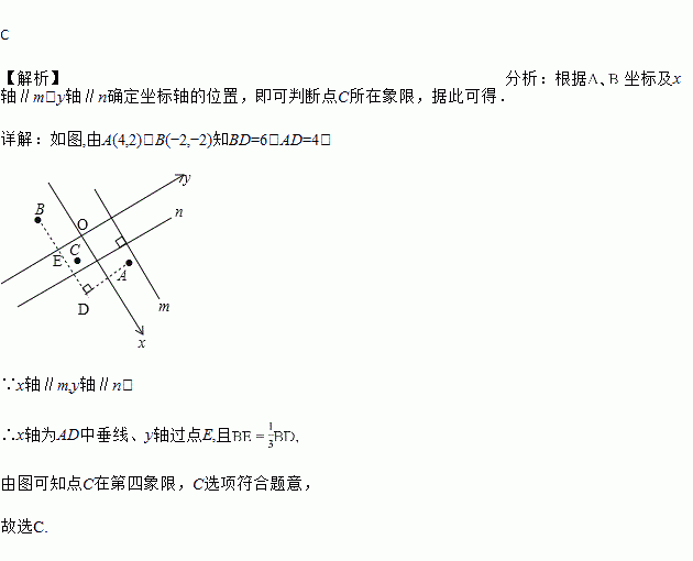 如图,直线m⊥n,在某平面直角坐标系中,x轴∥m,y轴∥n,点A的坐标为(4,2),点B的坐标为(﹣2,﹣2),则点C的坐标为( )
