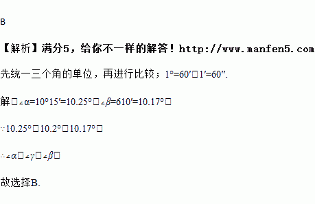 已知∠α=10°15′,∠β=610′,∠γ=10.2°,下列比较大小正确的是( )