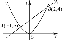 如图,一次函数y1=kx+b与二次函数y2=ax2的图象交于A、B两点.