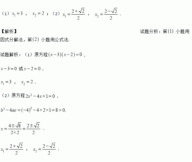 (1), ;(2), . 【解析】试题分析:第小题用因式分解法,第小题用公式法. 试题解析:(1)原方程, 或, , . (2)原方程, . , .