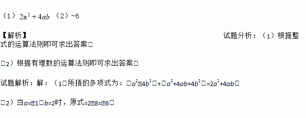 (2)当, 时,求所捂的多项式的值.