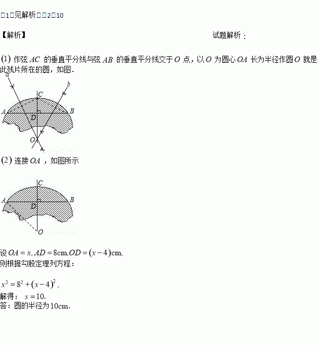 (1)求作此残片所在的圆(不写作法,保留作图痕迹);