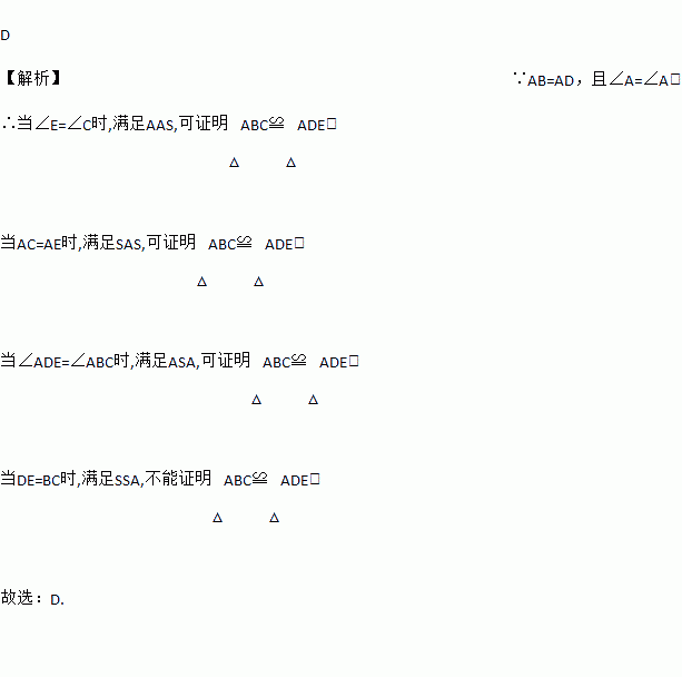 如图,AB=AD,要说明△ABC≌△ADE,需添加的条件不能是( )