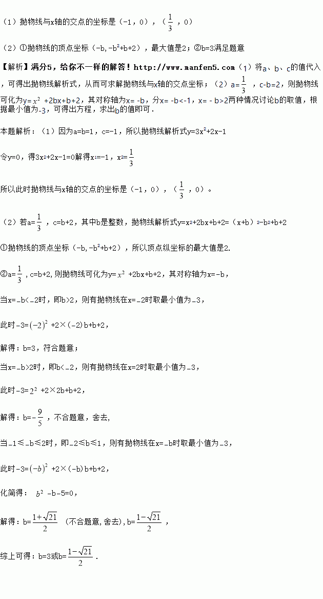 ②若抛物线在-2≤x≤2时,抛物线的最小值是-3,求b的值。