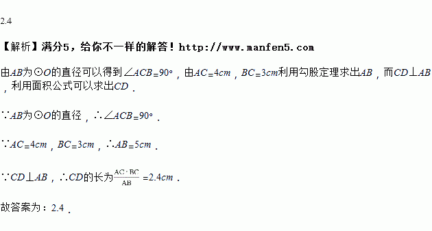 如图,为的直径,弦,,,垂足为,那么的长为________.