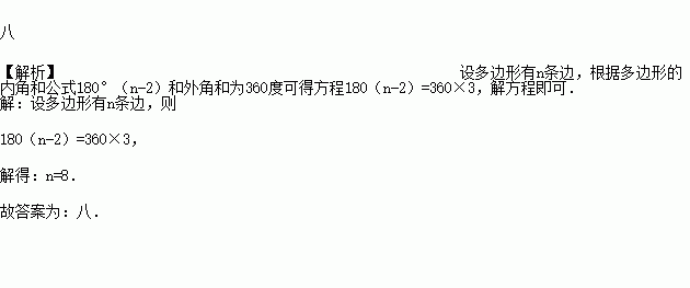 一个多边形的内角和等于外角和的3倍,那么这个多边形为______边形.