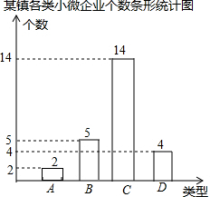 ·ÖÎö £¨1£©ÓÉÌâÒâ¿ÉµÃ¸ÃÕò±¾´Îͳ¼ÆµÄС΢ÆóÒµ×ܸöÊýÊÇ£º4¡Â16%=25£¨¸ö£©£»ÉÈÐÎͳ¼ÆÍ¼ÖÐBÀàËù¶ÔÓ¦ÉÈÐÎÔ²ÐĽǵĶÈÊýΪ£º$\frac{5}{25}$¡Á360¡ã=72¡ã£»ÓÖÓÉAÀàС΢ÆóÒµ¸öÊýΪ£º25-5-14-4=2£¨¸ö£©£»¼´¿É²¹È«ÌõÐÎͳ¼ÆÍ¼£»