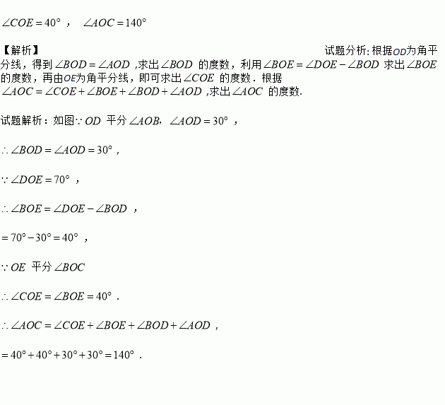 如图,OD平分,OE平分,,,求的