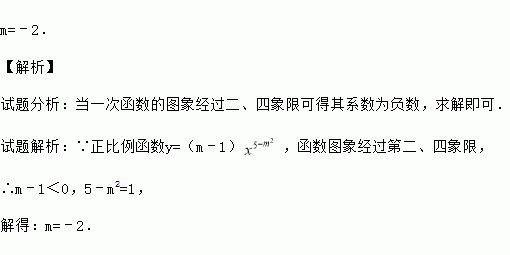 已知正比例函数y=(m﹣1)的图象在第二、四象限,求m的值.