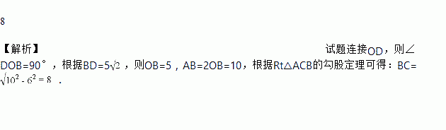 如图,△ABC内接于⊙O,∠ACB=90°,∠ACB的角平分线交⊙O于D.若AC=6,BD=5,则BC的长为_____.