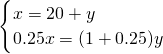 甲、乙两人从同一地点出发,同向而行,甲乘车,乙步行.如果乙先走20km,那么甲用1小时就能追上乙;如果乙先走1小时,那么甲只用15分钟就能追上乙,求甲、乙二人的速度.