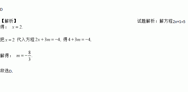 若关于x的方程2x+3m=-4和2x+1=5有相同的解,则m的值是( )