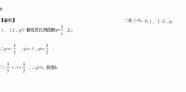 若点A(-5,y1),B(-3,y2),C(2,y3)在反比例函数