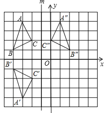 (2)根据△ABC关于直线m对称的图形△A″B″C″,得出A″,B″,C″坐标进而画出图形即可;