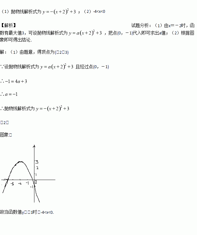 已知二次函数在x=-2时,函数有最大值3,且图象经过点(0,-1).